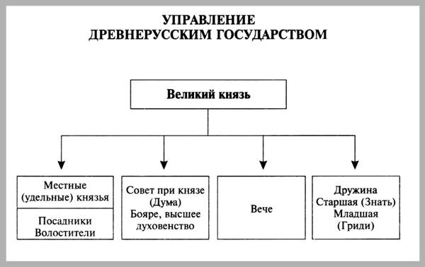 Управление Древнерусским государством // Кириллов В.В. Отечественная история в схемах и таблицах. М., 2005. С. 27.