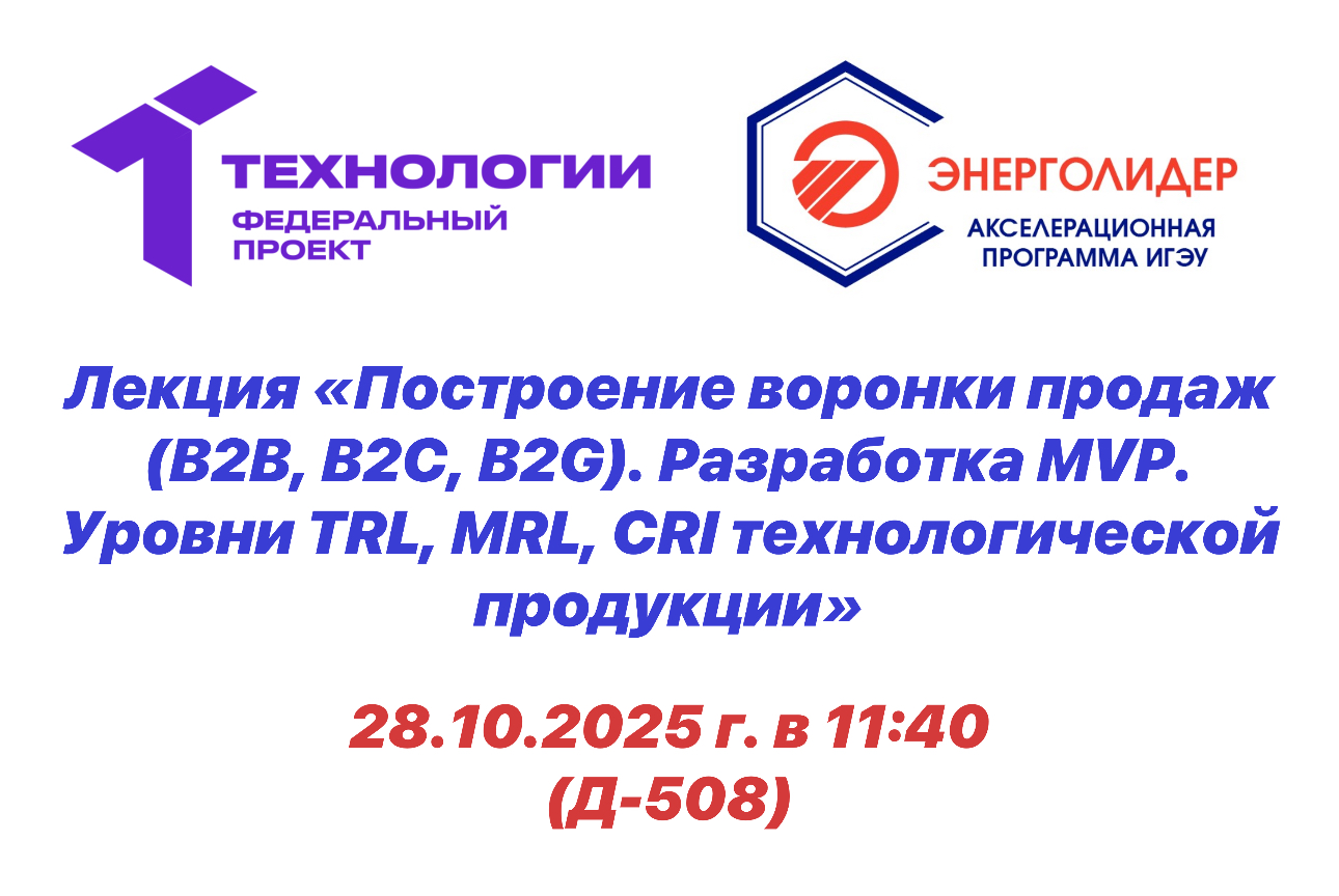Лекции по технологическому предпринимательству проводятся в рамках Акселерационной программы «ЭнергоЛидер» при поддержке генерального индустриального партнера ИГЭУ - АО «Концерн Росэнергоатом».