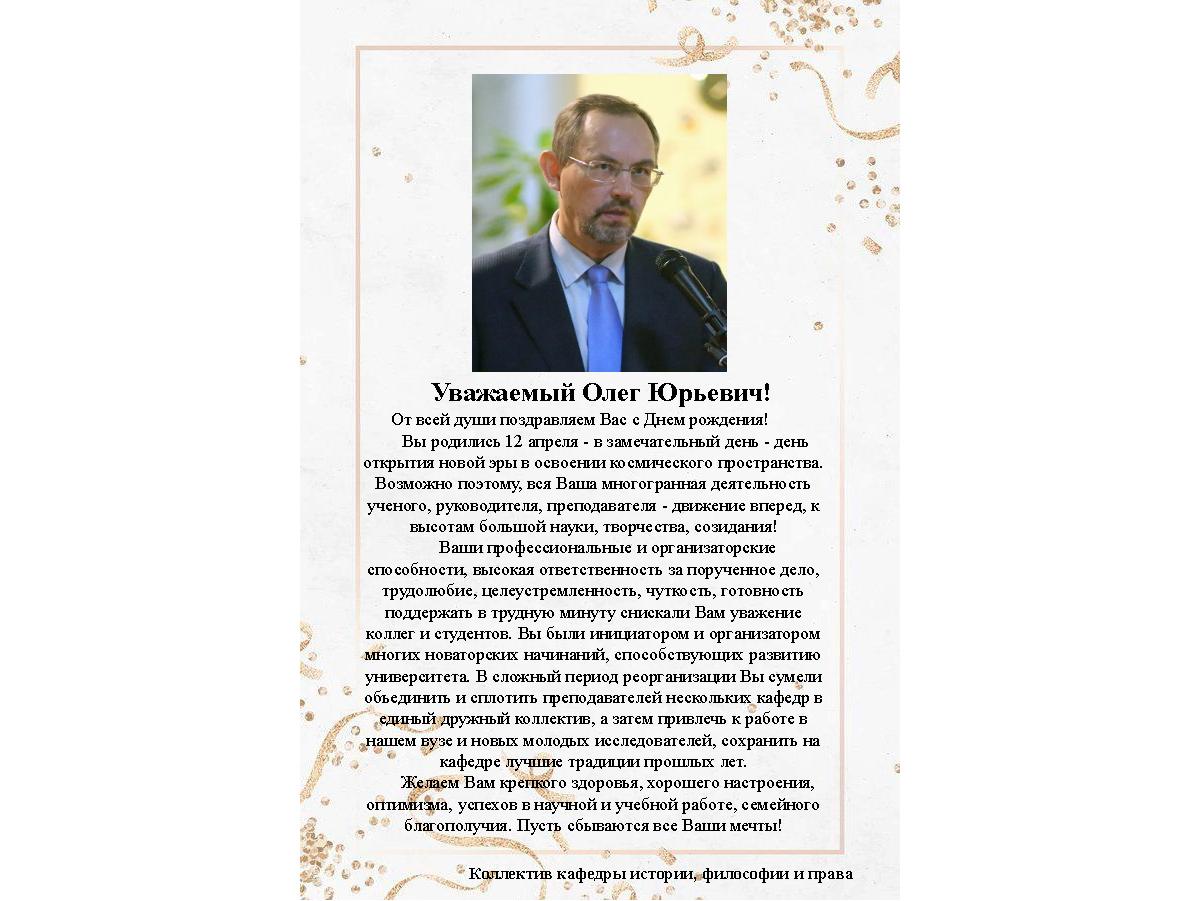 Желаем Вам крепкого здоровья, хорошего настроения, оптимизма, успехов в научной и учебной работе, семейного благополучия.