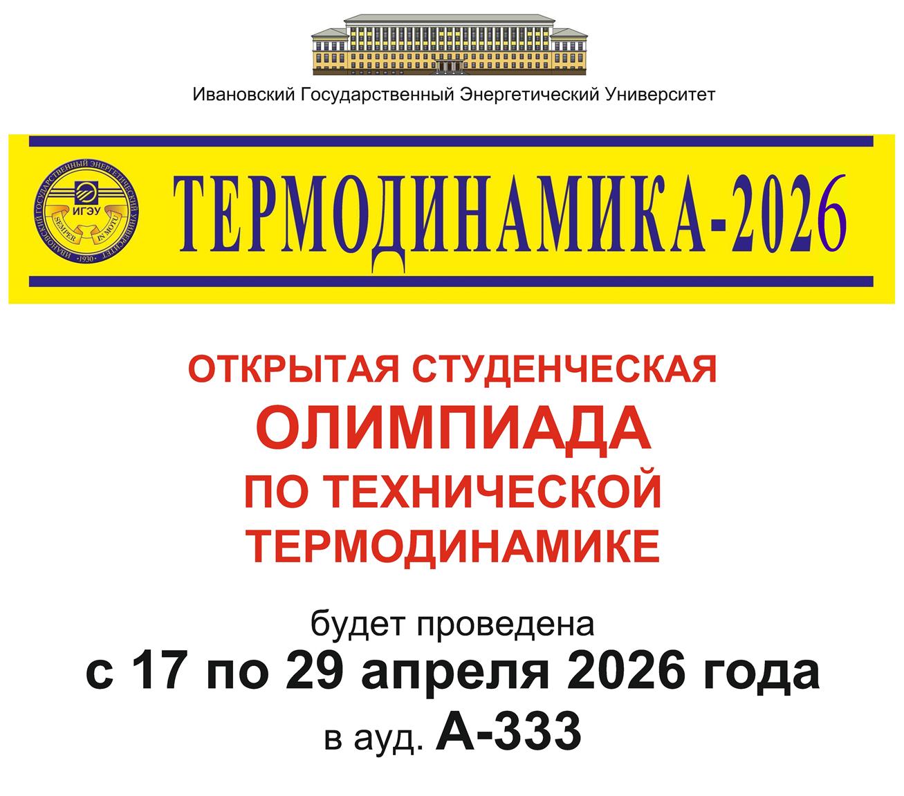 Открытая олимпиада по технической термодинамике, 14-25 апреля 2025 г. (ИГЭУ, А-333)