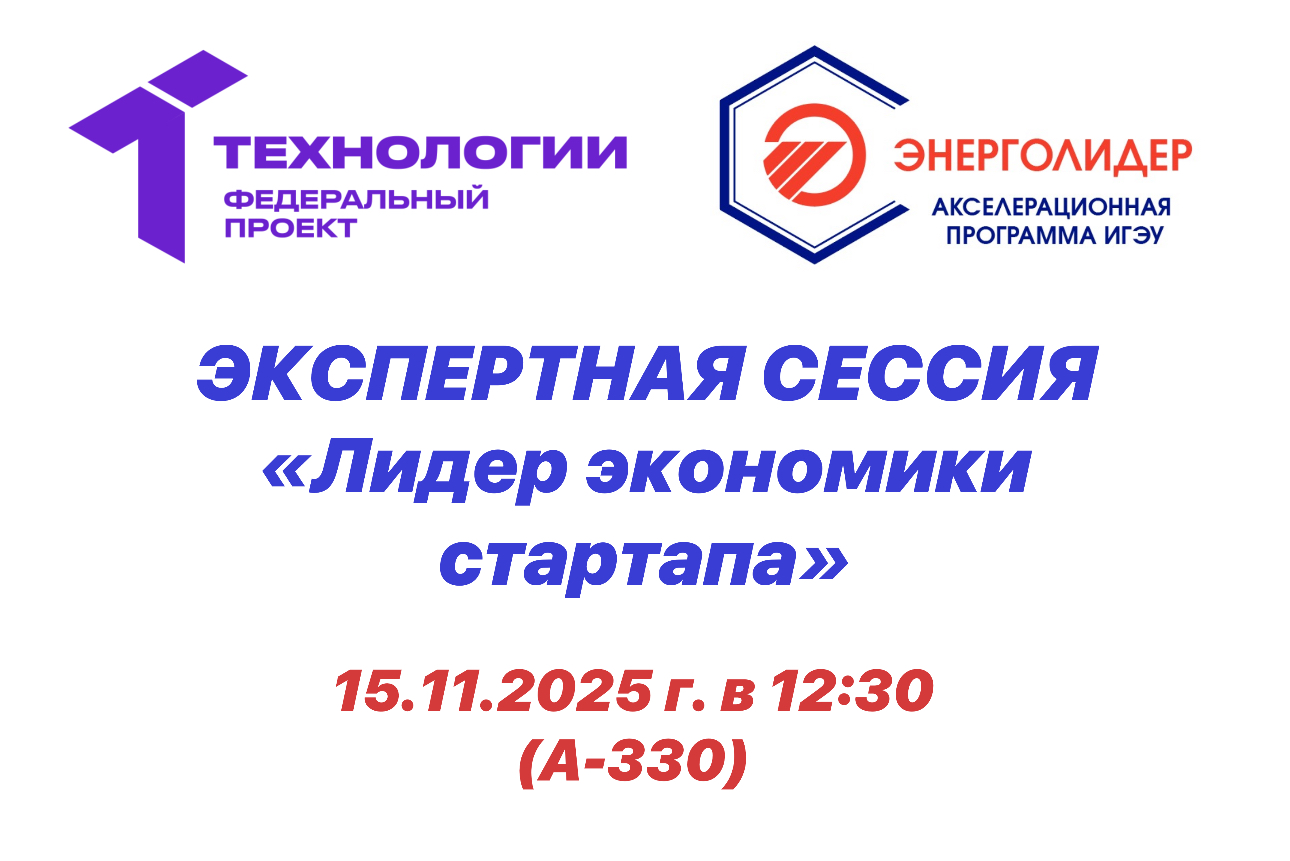 15 ноября 2025 г. в 12:30 в ауд. А-330 состоится экспертная сессия «Лидер технологии стартапа» Акселерационной программы ИГЭУ «ЭнергоЛидер».