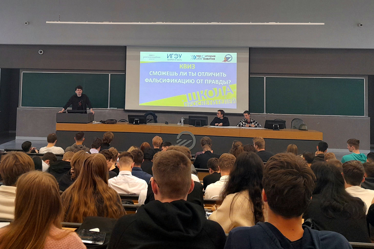 • Для слушателей Школы и всех желающих были проведены два квиза по теме «Сможешь ли ты распознать фальсификацию истории России?» В рамках квизов проверялись: знание истории, умение анализировать историческую и социальную информацию, критическое мышление ребят.