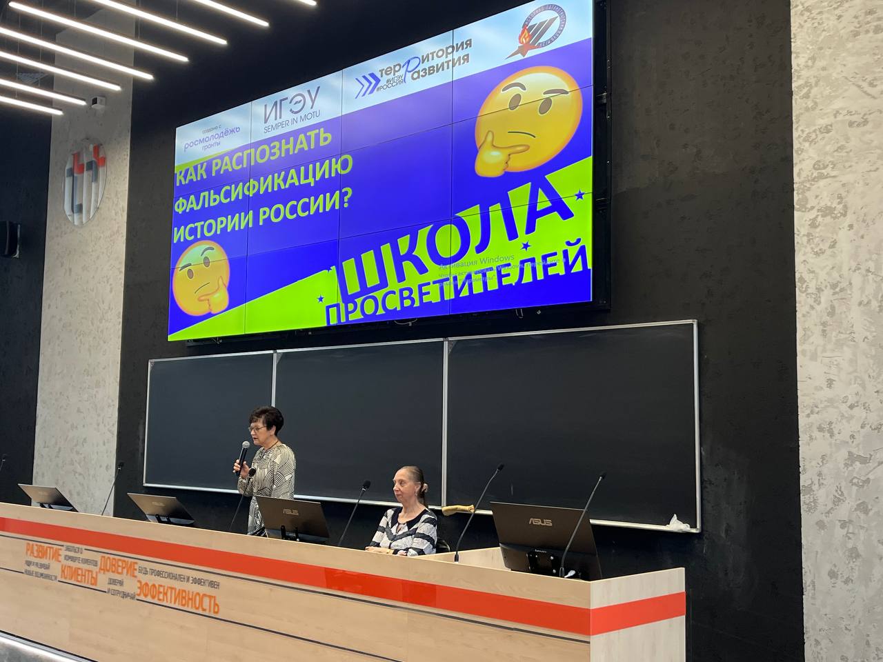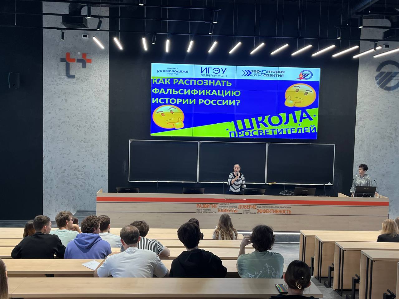 • 28 ноября состоится просветительская акция «Помним прошлое ради будущего». В рамках акции наиболее активные слушатели Школы просветителей подготовят свои авторские доклады на тему фальсификации отдельных периодов российской истории и выступят с ними перед студентами первого курса.
