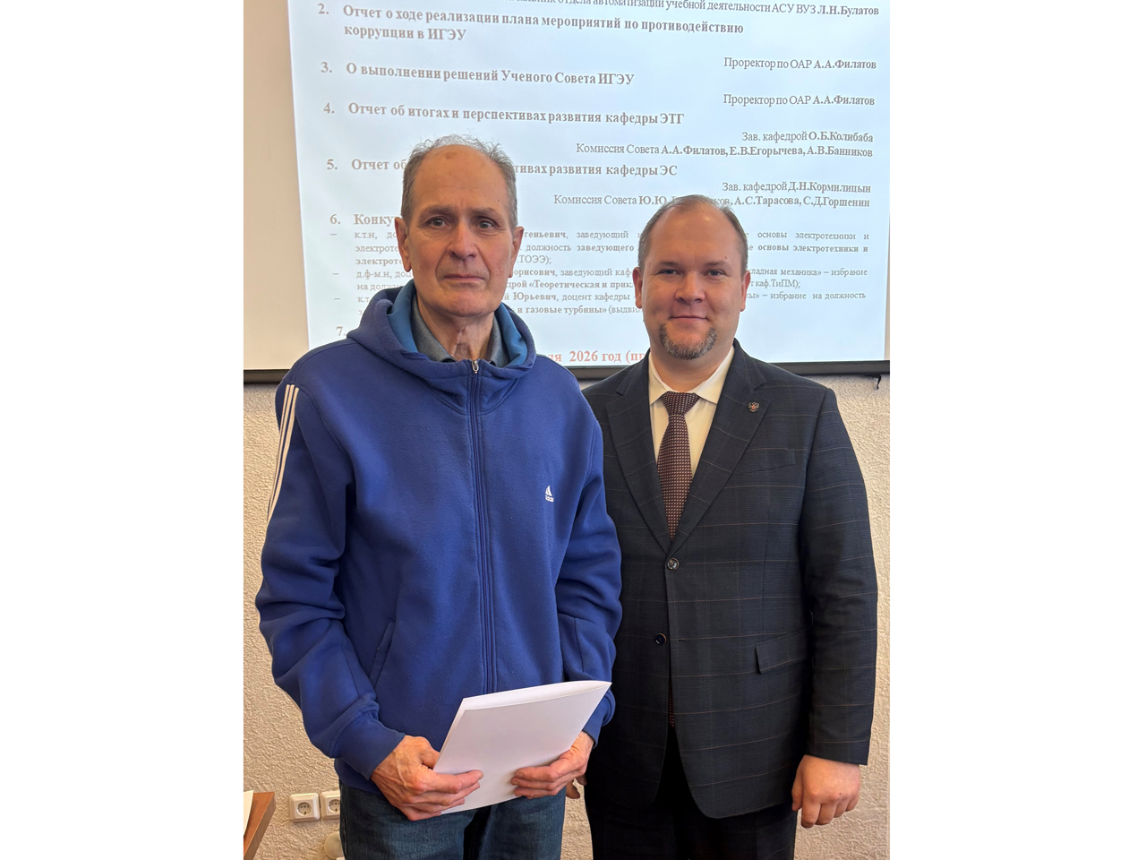29 апреля на очередном заседании Ученого совета ИГЭУ ректор университета Григорий Васильевич Ледуховский вручил ведомственные награды преподавателям кафедры физического воспитания.